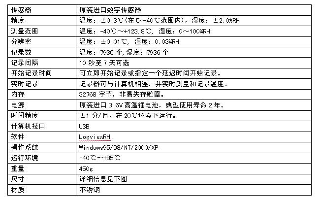 它可對-40℃~+123.8℃范圍的溫度和0~100%RH的濕度進行自動記錄。記錄器具有高濕度測量精度(2.0%RH),采用內置溫濕度傳感器,提供長期運行的穩定性和高精度,它能提供更快的溫度和濕度響應。溫濕度數據記錄器內采用高容量鋰電池,最大連續使用壽命可達2年。