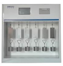 產品用途:把貼有試樣的試驗板垂直吊掛在試驗架上,下端懸掛規定重量的砝碼,用一定時間后試樣粘脫的位移量,或試樣完全脫離的時間來表征膠粘帶抵抗拉脫的能力。本設備采用單片機計時,LED觸摸液晶顯示試驗時間,計算實驗結果,適用于壓敏膠粘帶等產品進行持粘性測試試驗。