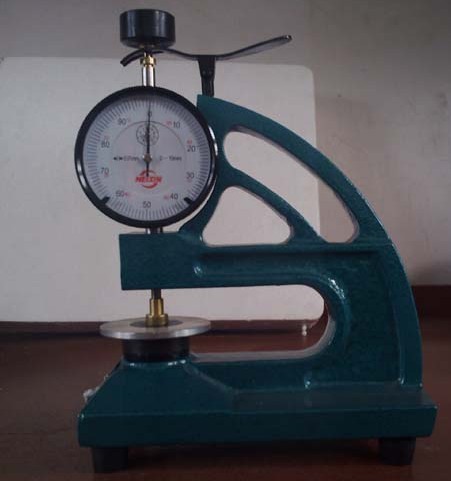 2、用手指按下操縱桿,使測(cè)足上臺(tái),將被測(cè)片材質(zhì)放在平臺(tái)與測(cè)足之間,輕放操縱桿此時(shí)表的讀數(shù),即被測(cè)物的厚度。每個(gè)待測(cè)尺寸至少要取5個(gè)測(cè)量值,計(jì)算5點(diǎn)的平均值作為該卷材的厚度并報(bào)告最小單位值。